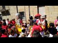 Una lluvia de caramelos, besos y lloros de los txikis despidieron en la Placeta de Olite a la comparsa de Gigantes y Cabezudos, que en es...