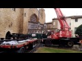 El tejado metálico que protegerá la Portada de Santa María de Olite/Erriberri comenzó el lunes por la tarde su ensamblaje bajo la supervi...